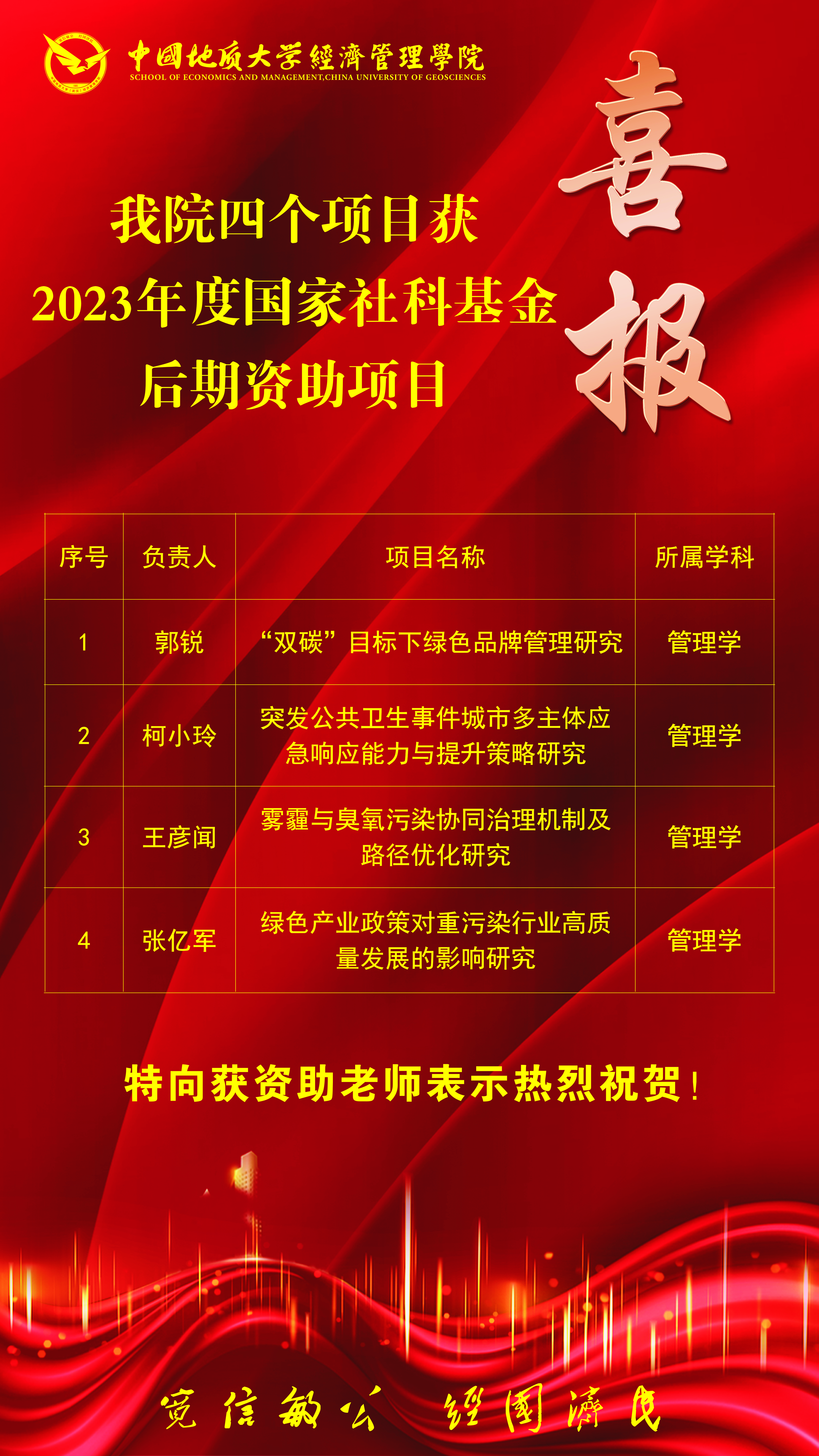 (通讯员 胡松琴)2023年11月15日,全国哲学社会科学工作办公室发布《2023年度国家社科基金后期资助项目和优秀博士论文出版项目立项名单公布》,williamhill英国中文共有四个项目获得了后期资助立项。