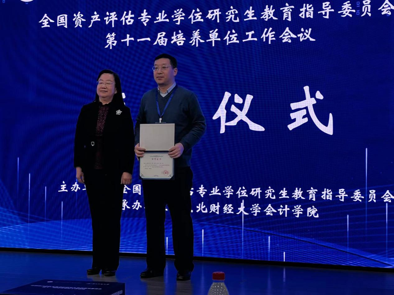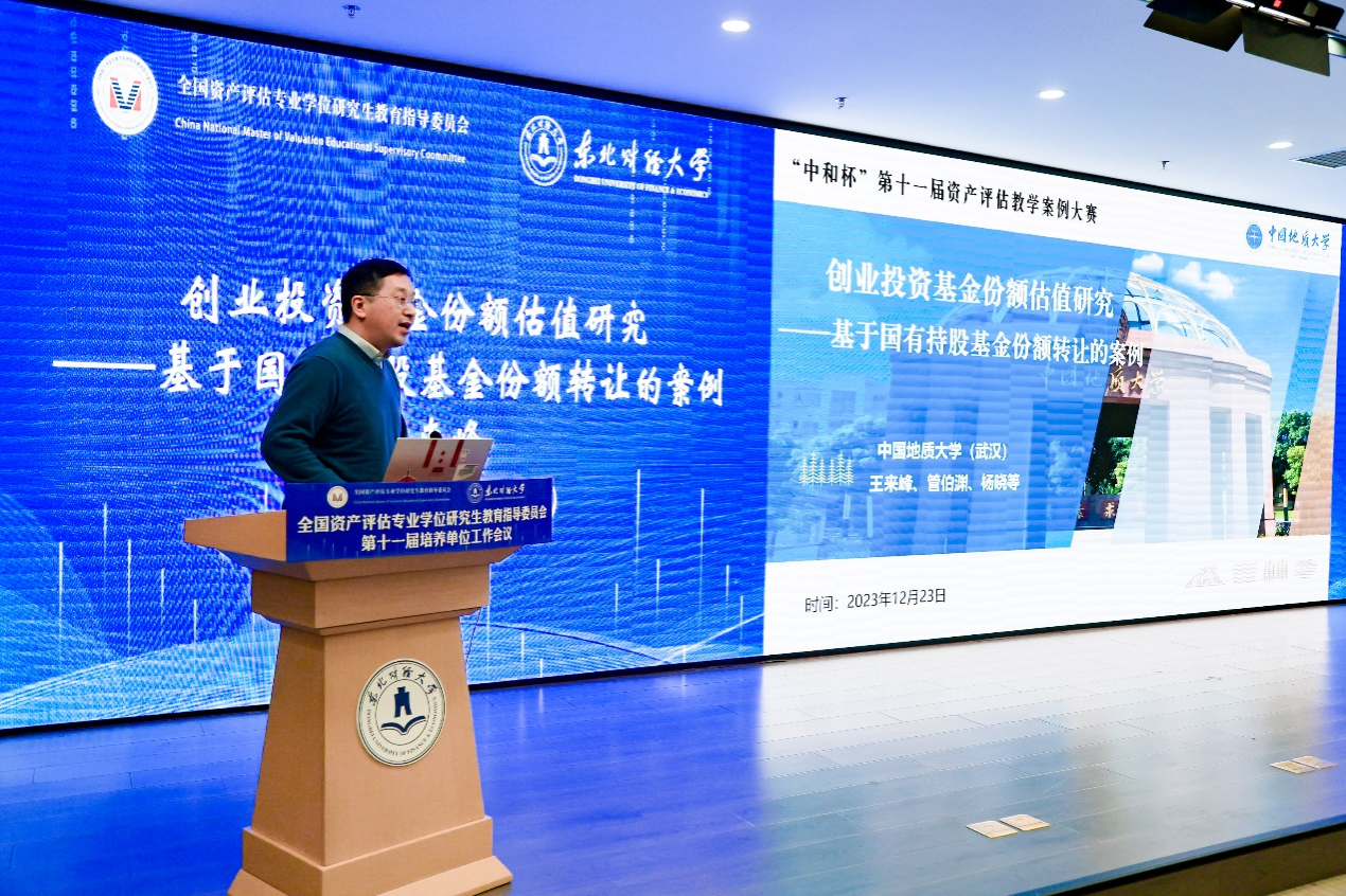 (通讯员 龚承柱)12月23日,由全国资产评估专业学位研究生教育指导委员会主办、东北财经大学会计学院承办的第十一届全国资产评估专业学位研究生教育指导委员会培养单位工作会议暨第十一届全国资产评估教学案例大赛颁奖仪式在东北财经大学成功举行。我院王来峰副教授撰写的《创业投资基金份额估值研究——基于国有持股基金份额转让的案例》,荣获本次比赛一等奖,全国资产评估研究生教育指导委员会副主任、中国资产评估协会副会长陆庆平司长颁奖,王来峰副教授在大会主会场做了案例经验分享报告。