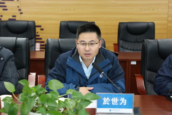 座谈会上,於世为院长首先对中建二局华中公司领导一行到校开展交流表示热烈欢迎,并介绍了学院基本情况和办学特色,强调学院办学有行业性、专业性、职业性等特点;他表示近年来,学院立足人才培养的根本任务,积极探索多元化人才培养模式改革,着力搭建学校与企业间的人才培养桥梁,以一流专业建设标准构建学院人才培养体系,以校企合作的方式促进产教深度融合,推动教育教学水平和人才培养质量稳步提升;希望以此次座谈交流为契机,与中建二局华中公司在人才共育、科学研究、党建活动、实习就业上开展交流合作。
