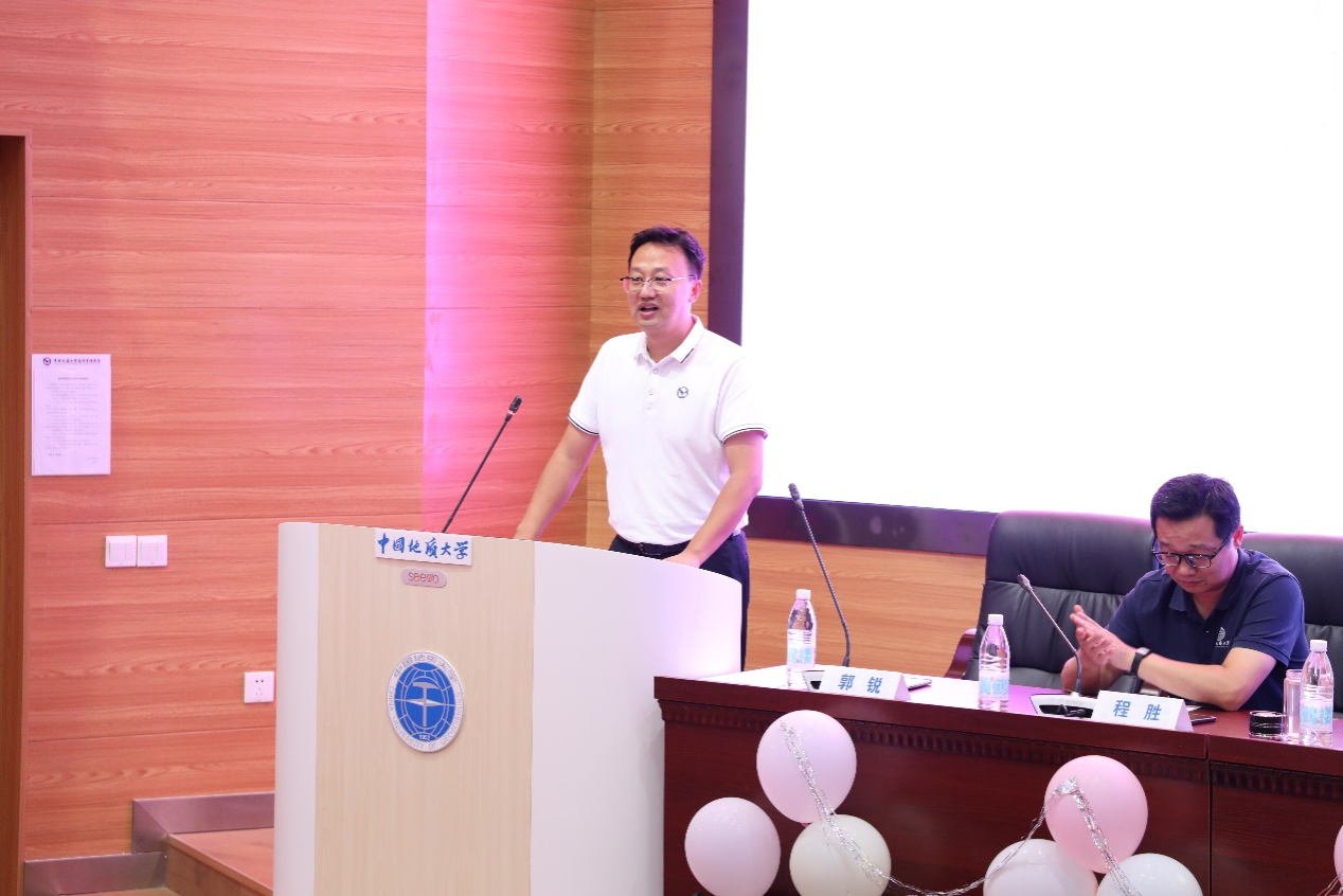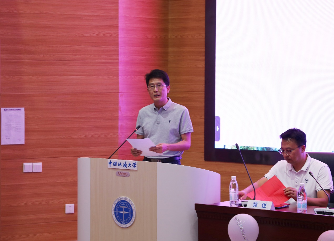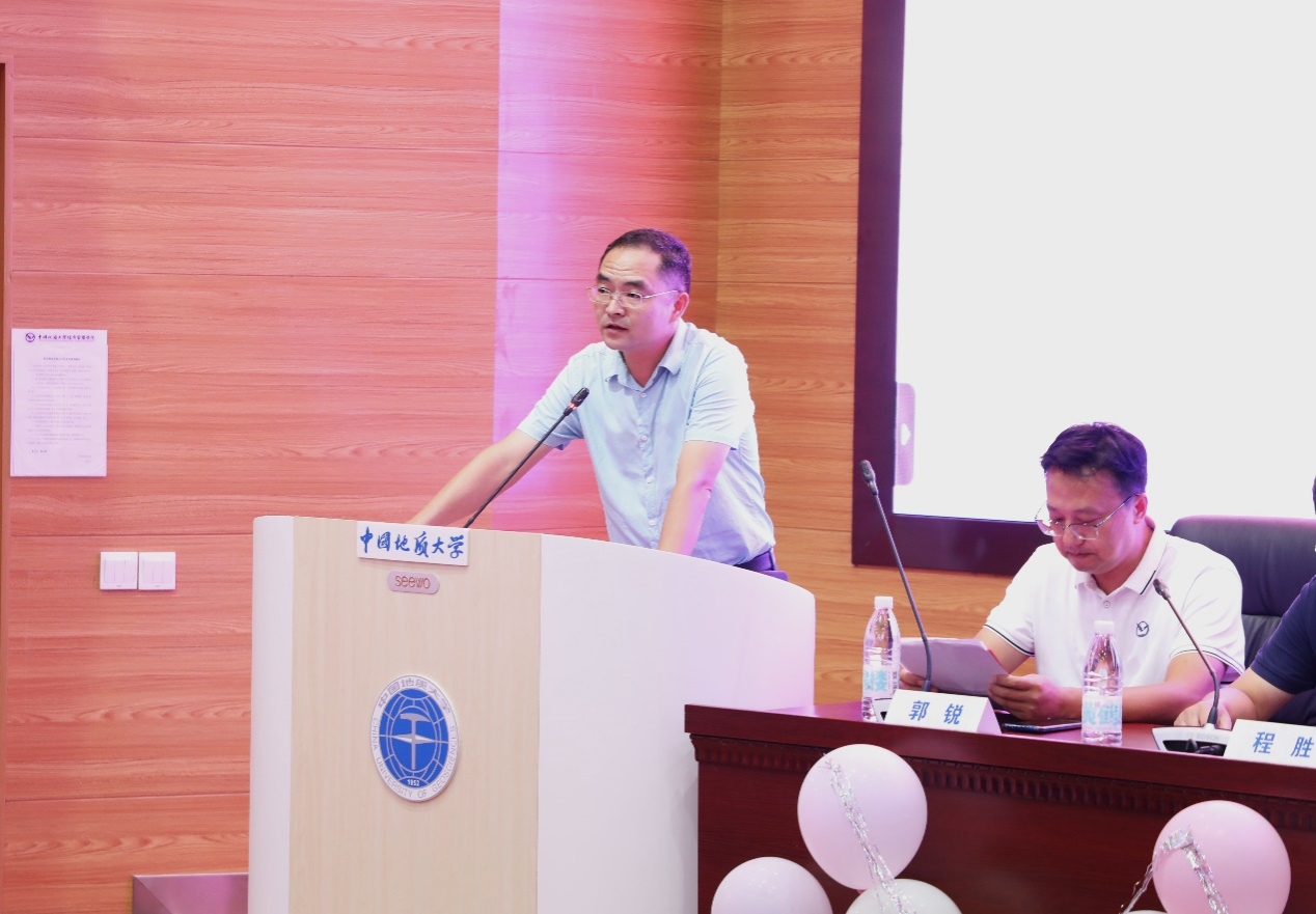 洪军副院长在讲话中热烈欢迎新同学,并对支持项目的领导和教职工表示感谢。他强调了研究生教育的重要性,以及中国地质大学在培养高级人才方面的成就和资源。同时,他向研究生们提出了期望:珍惜时光、勤奋学习;勇于实践、敢于创新和团结协作、共同进步,不断提升自己的专业素养和综合能力,成为具有国际视野和领导力的高端管理人才。