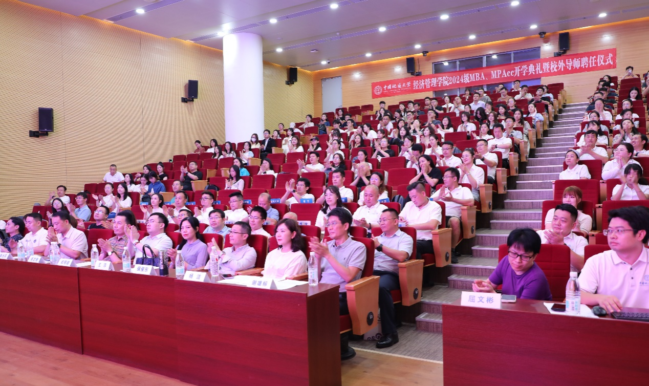 学校研究生院洪军副院长,院党委书记杨昌锐、院长於世为、党委副书记李纪亮、副院长王广民、程胜,教师侯俊东、谢雄标、杨洁、屈文彬等专硕导师代表、专硕中心老师、专硕联合会代表、商协会及赞助商代表,2024级MBA、MPAcc全体新同学等出席和参加典礼。开学典礼由学院副院长郭锐主持。