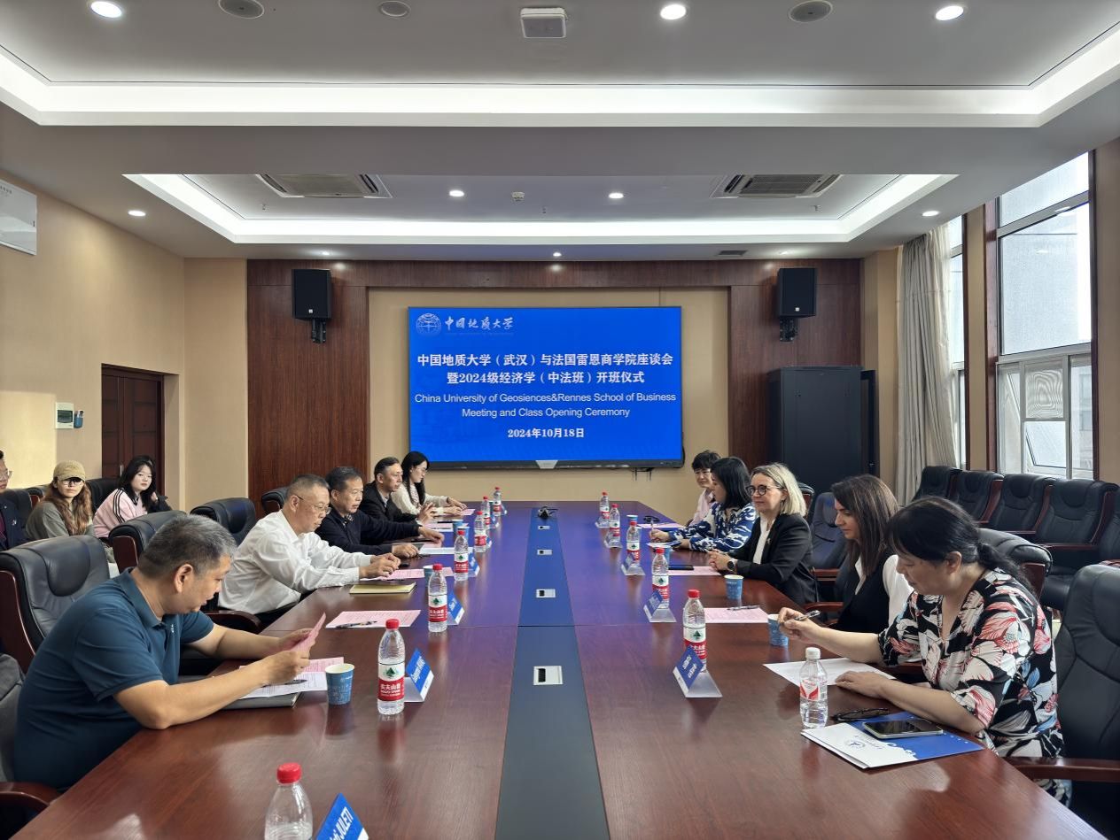 10月18日,法国雷恩商学院全球市场与发展高级总监Stephanie HIAUMET、国际发展部主任Caroline JOUANIN、中国事务主任Louise CHEN与驻武汉办公室主任杨蓓、副主任孙利等来校访问座谈,校党委副书记、纪委书记唐忠阳,学院党委书记杨昌锐、副院长王广民、经济学系主任刘江宜等教师和经济学(中法班)学生代表参加了座谈。
