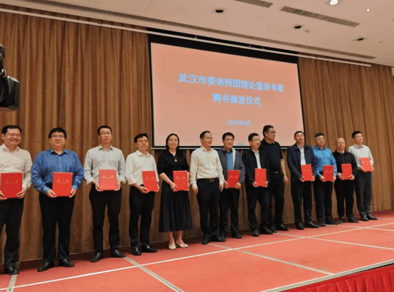 (通讯员 王彦闻)4月9日,武汉市委宣传部举行理论宣讲工作座谈会及专家聘任仪式,我院邓宏兵教授、易明教授、齐睿副教授受聘成为新一届市委讲师团理论宣讲专家。该讲师团由在汉高校、党校及社科机构遴选的149位专家组成,聘期三年。三位专家将围绕党的方针政策及经济社会发展热点,参与理论宣讲、干部培训及基层理论普及活动,发挥高校智库优势,助力提升党员干部理论素养与治理能力,为武汉现代化治理和高质量发展提供智力支持。未来,三位专家将继续依托各自研究领域的深厚积淀,积极参与重大政策解读与实践指导,为武汉市构建现代化治理体系、促进区域协调发展注入更多高校智慧。