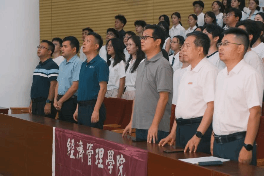 典礼最后,杨昌锐作总结讲话。杨书记勉励新生以开学典礼为起点,牢记“知识探索者与创造者”的身份定位,既要深耕专业、追求学术卓越,也要融入集体、勇担社会责任,在经济管理领域找准方向,以青春之力为行业发展、国家建设贡献智慧。