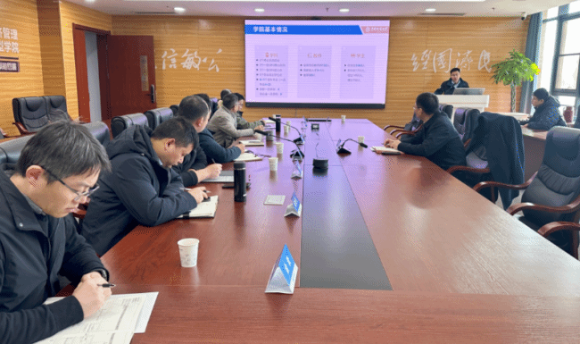 院长於世为代表院领导班子汇报工作,介绍了学院基本情况与发展思路,重点汇报年度工作亮点:一是实施“雄鹰工程”,深化党建引领,推动党建与事业发展同频共振;二是实施“亮点工程”,在AMBA&BGA国际认证、工程管理专业认证及MBA招生等方面斩获标志性成果;三是实施绩效改革,科研经费再创新高;四是实施专业优化调整,停招3个传统专业、新增数字经济专业;五是实施开源节流,治理效能有力提升。他还分析了当前挑战,并展望“十五五”期间聚焦特色学科、创新培养模式等发展规划。薛保山及其他班子成员结合分管工作,就申报特色学院、深化校企合作、优化挂职机制等需学校支持事项作补充汇报。