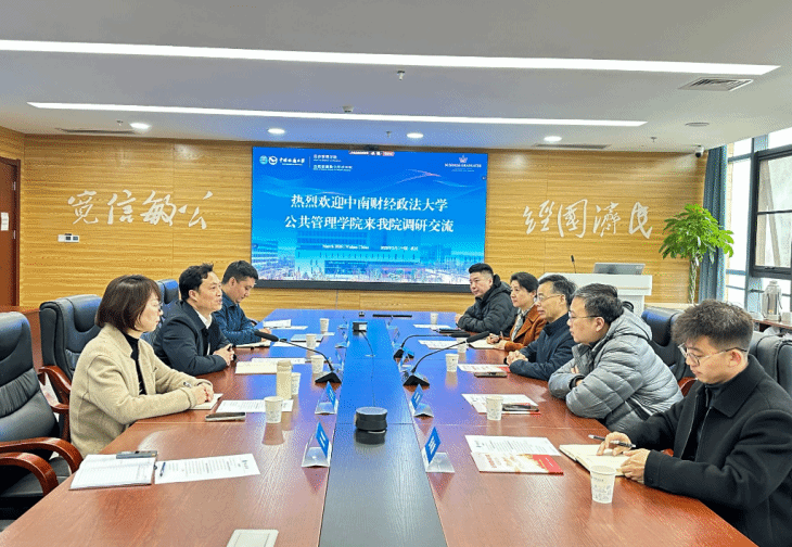 3月20日下午,中南财经政法大学公共管理学院党委书记王建荣一行到访我院,围绕党建创新、学院治理及数智融合建设开展交流。我院党委书记薛保山主持座谈会。