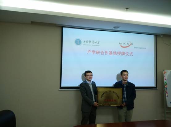 会后,肖建忠副院长与路雪松总经理主持了产学研合作基地的授匾仪式,然后肖建忠副院长向精益华东事业部(中国地质大学校友)徐霓总经理、王晓明总监的颁发了企业导师聘用证书。17日下午,汉得学院路雪松总经理带领肖建忠、王广民、翁克瑞参观了上海汉得园区。