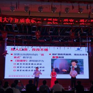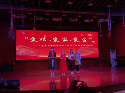 (通讯员周玲摄影王萍)2018年9月28日下午,由校工会组织的“爱校、爱家、爱生”主题演讲比赛在校工会综合厅举行。由我院倪琳、龚承柱、努尔夏提三位老师以《不忘初心,情怀圆梦》为主题激情演绎的作品在25支参赛队伍中以优异成绩胜出,荣获比赛一等奖。