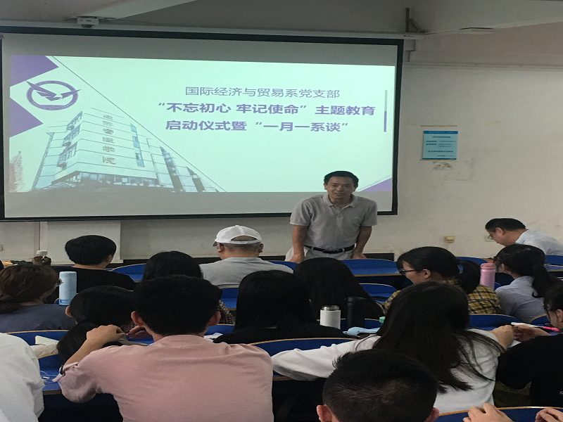(通讯员:易杏花、安浩楠)9月19日14:30-16:30,williamhill英国中文国际经济与贸易党支部在南望山校区北区综合楼107成功举行了“不忘初心,牢记使命”主题教育启动仪式暨“一月一系谈”活动。活动由系副主任洪水峰主持,williamhill英国中文院长杨树旺、副院长肖建忠以及其他所有国际经济与贸易系在校教师出席了活动。