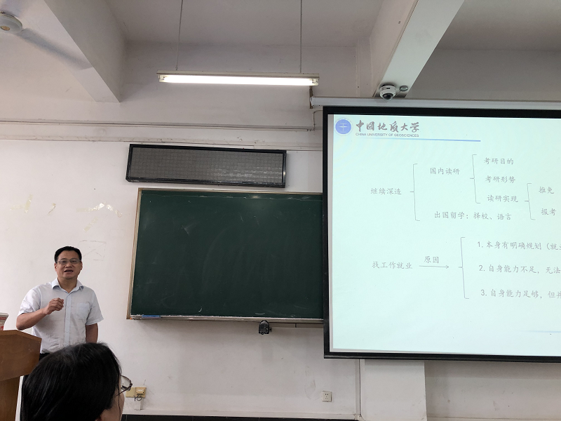 接下来由系主任白永亮对攻读硕士研究生进行专项指导,这也是主题教育工作安排中的一项。白老师从“就业or读研?”这个问题出发,分析了学生们不同的考研目的以及国内高校近年来招收研究生形势,指出了考研对于学生未来发展的裨益所在。同时,也对跨专业考研、主要高校经济学学科评估情况、考研录取分数线等情况进行了介绍,既为大二大三的学生指引了努力方向,也为即将考研的大四学生理性定位学校带来满满干货。