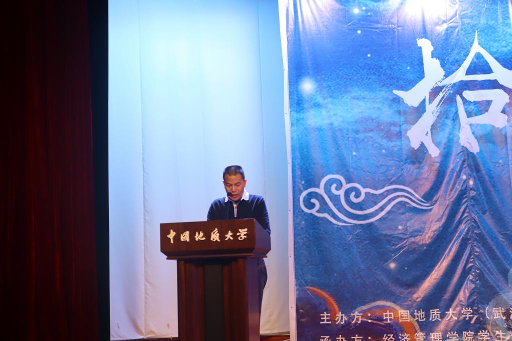 回校招聘的校友,2005级经济学专业本科生,招商银行黄石分行行长助理刘杨为同学们分享经历,鼓励大家努力向前。沈波老师在师生的强烈邀请下即兴献唱,一首《秋意浓》再次点燃全场。晚会的最后,学院主持人队以清朗醇厚的嗓音吟诵《追梦地大》,全场起立齐唱《歌唱祖国》,为晚会添上完美收官之笔。