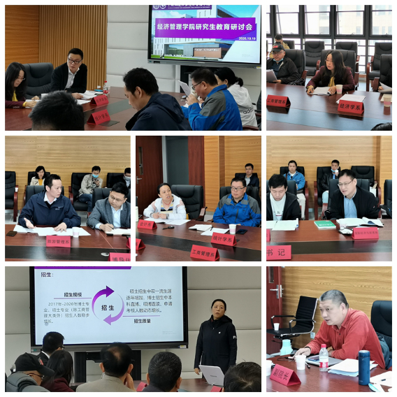 经管学院研究生秘书王简辞简要介绍了学院近四年研究生教育发展的总体情况。学院统计系、经济学系、国际经济与贸易系、管理科学与工程系、工商管理系、旅游管理系和会计系七系分别汇报了前期各系教师学习和研讨的主要内容,从学院的招生入口、宣传工作、课程建设、学院培养制度建设、博士中期考核、学术型与专业型硕士生培养关系、学生就业指导等多方面总结了取得的发展和成绩,对各系存在的问题和建议意见也做了充分的阐述。