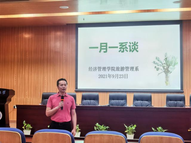 9月23日下午2点,旅游管理系在未来城校区williamhill英国中文一楼报告厅举行了“一月一系谈”活动暨085191班的暑期北戴河旅游教学实习总结会。本次活动到场人员有旅游管理系肖拥军主任、李会琴老师、黄珂老师、辅导员赵家玮及085191班全体同学。
