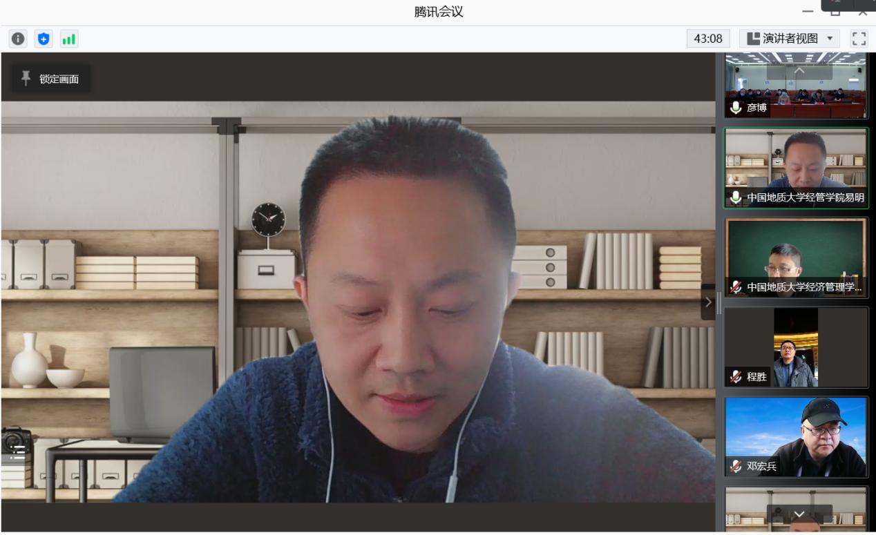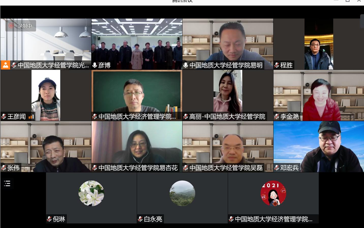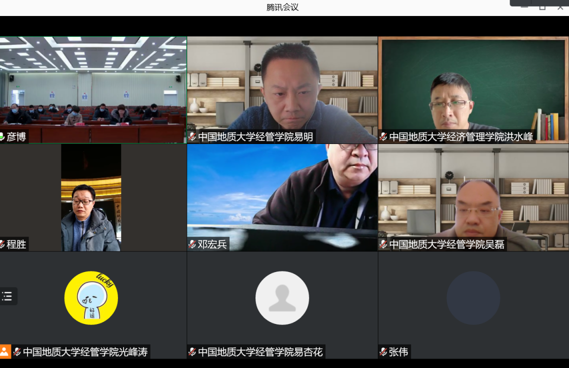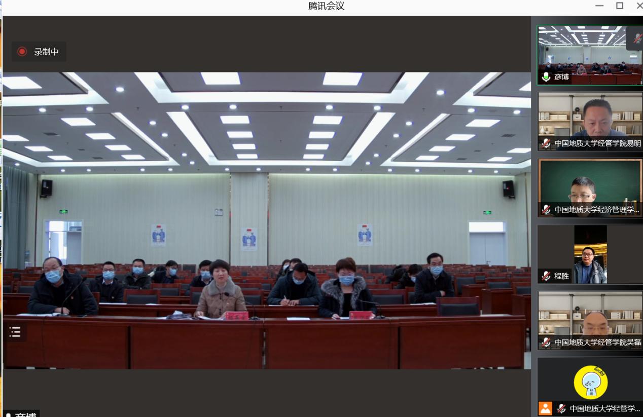 此外,金融与贸易系张伟教授、邓宏兵教授就双方在生态文明建设、绿色金融等方面的深化合作进行了探讨和交流。会议双方最后进行了云合影。