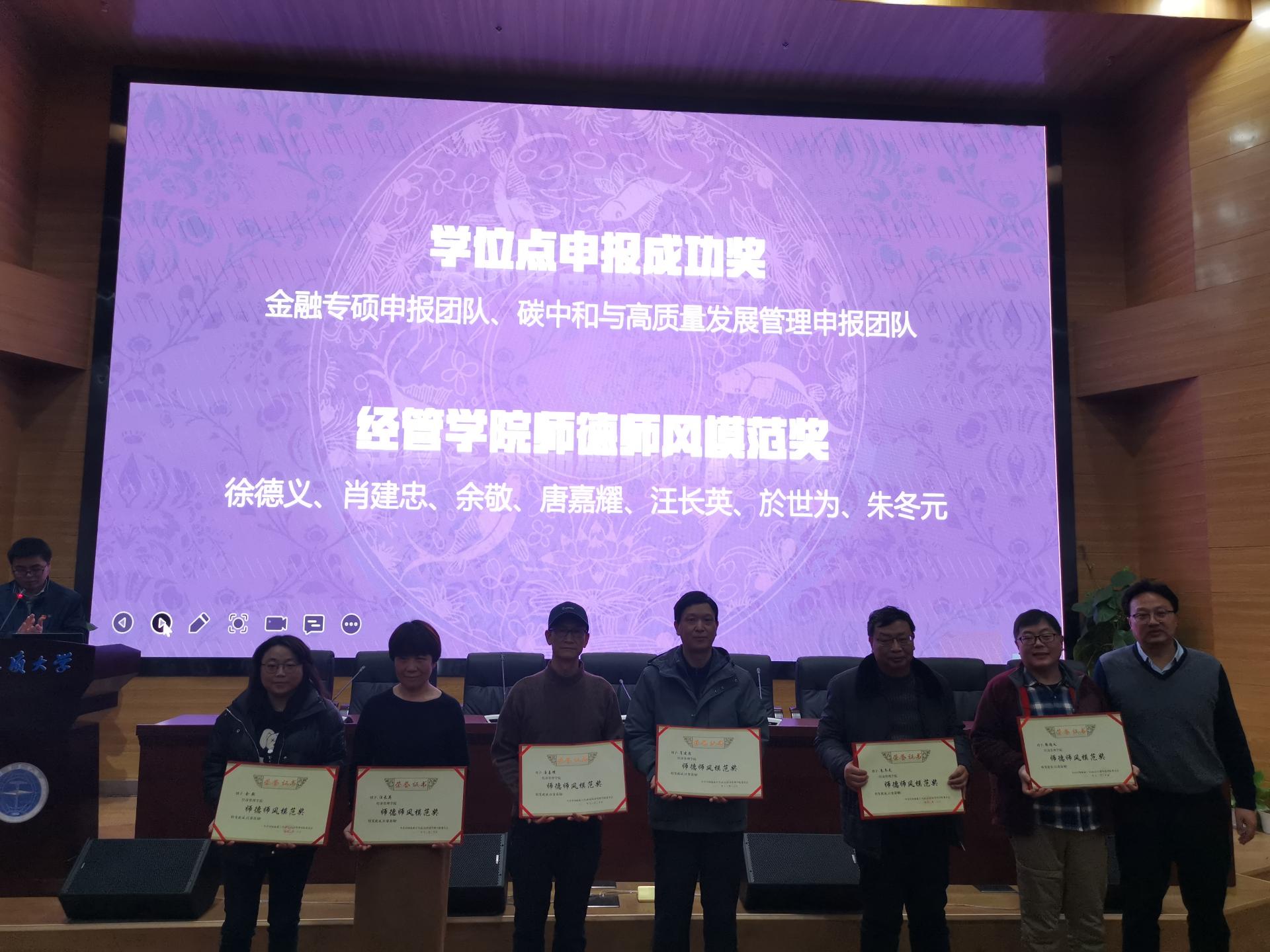 学院领导对突出贡献奖、学位点申报成功奖、williamhill英国中文师德师风模范奖、党史学习教育先进集体、经管学院优秀班主任奖、体育运动集体奖、学院工会积极分子等集体和优秀教师个人予以了表彰。