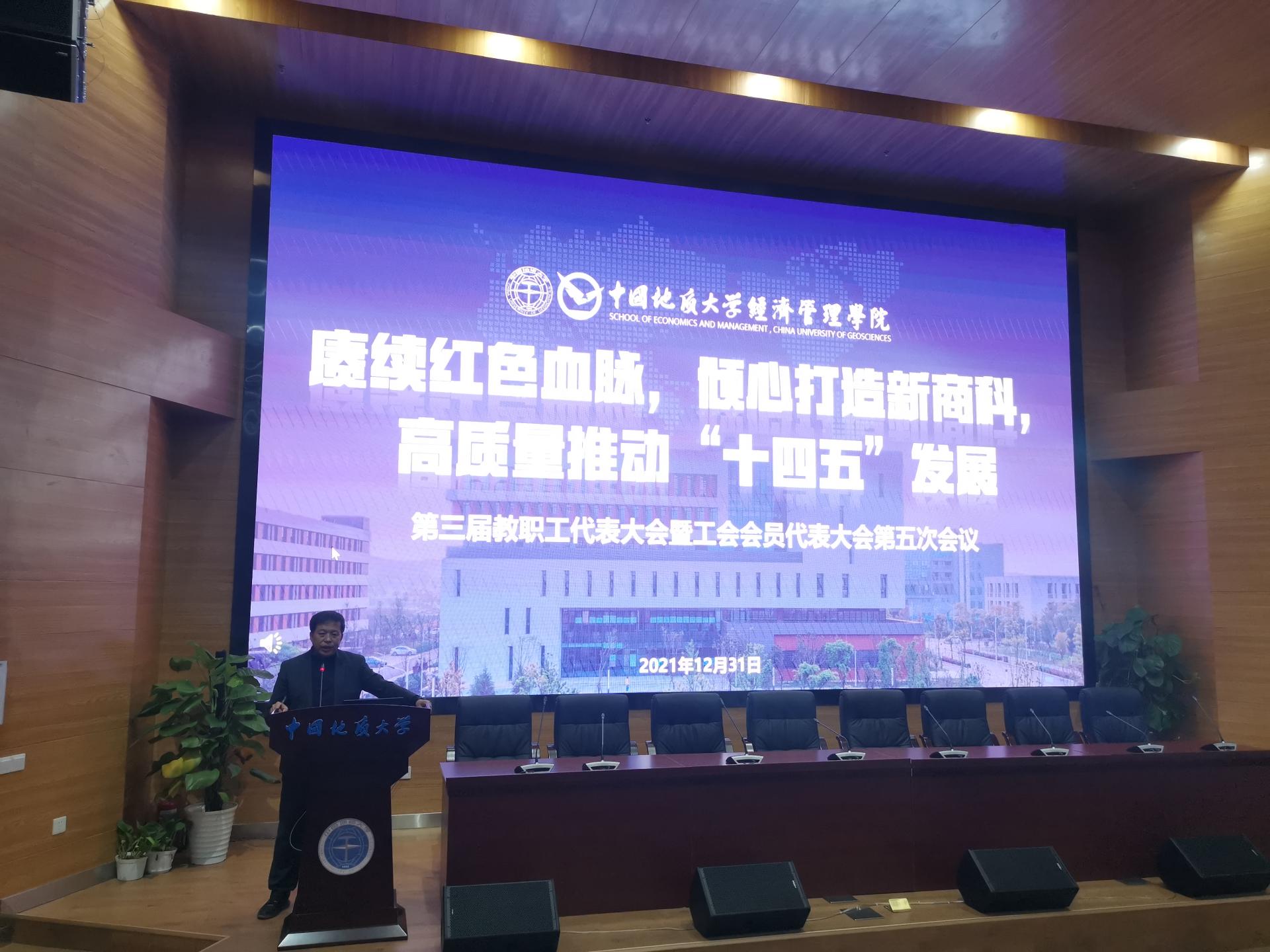 经管分工会主席王萍同志从加强思想政治引领、“鹰文化”建设初见端倪、推进民主政治建设、维护教职工权益等方面对2021年度威廉希尔做了总结与展望。
