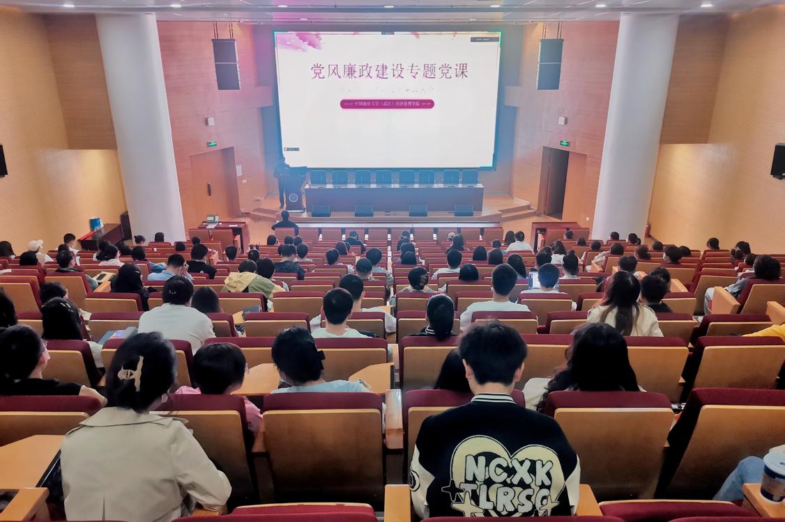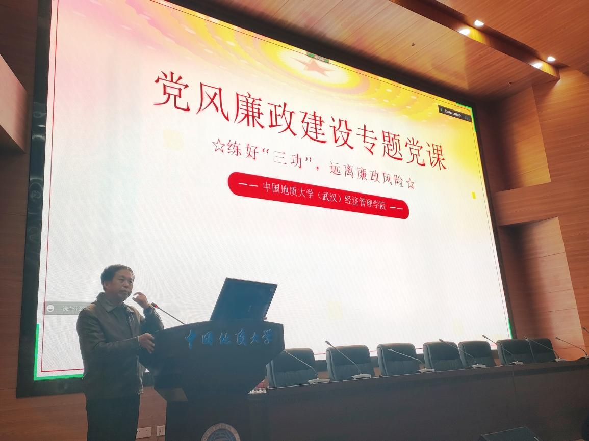 (通讯员:余甫文鑫)为深入推进“清廉学校”“清廉地大”“清廉经管”建设实施方案,落实立德树人根本任务,营造“卓越、和谐、幸福”的院风,推进廉洁教育进课堂,2022年10月14日,williamhill英国中文党风廉政建设专题党课在经管楼二楼报告厅举行,学院党委书记杨昌锐讲授专题党课,学生党建工作辅导员蔡杨主持。