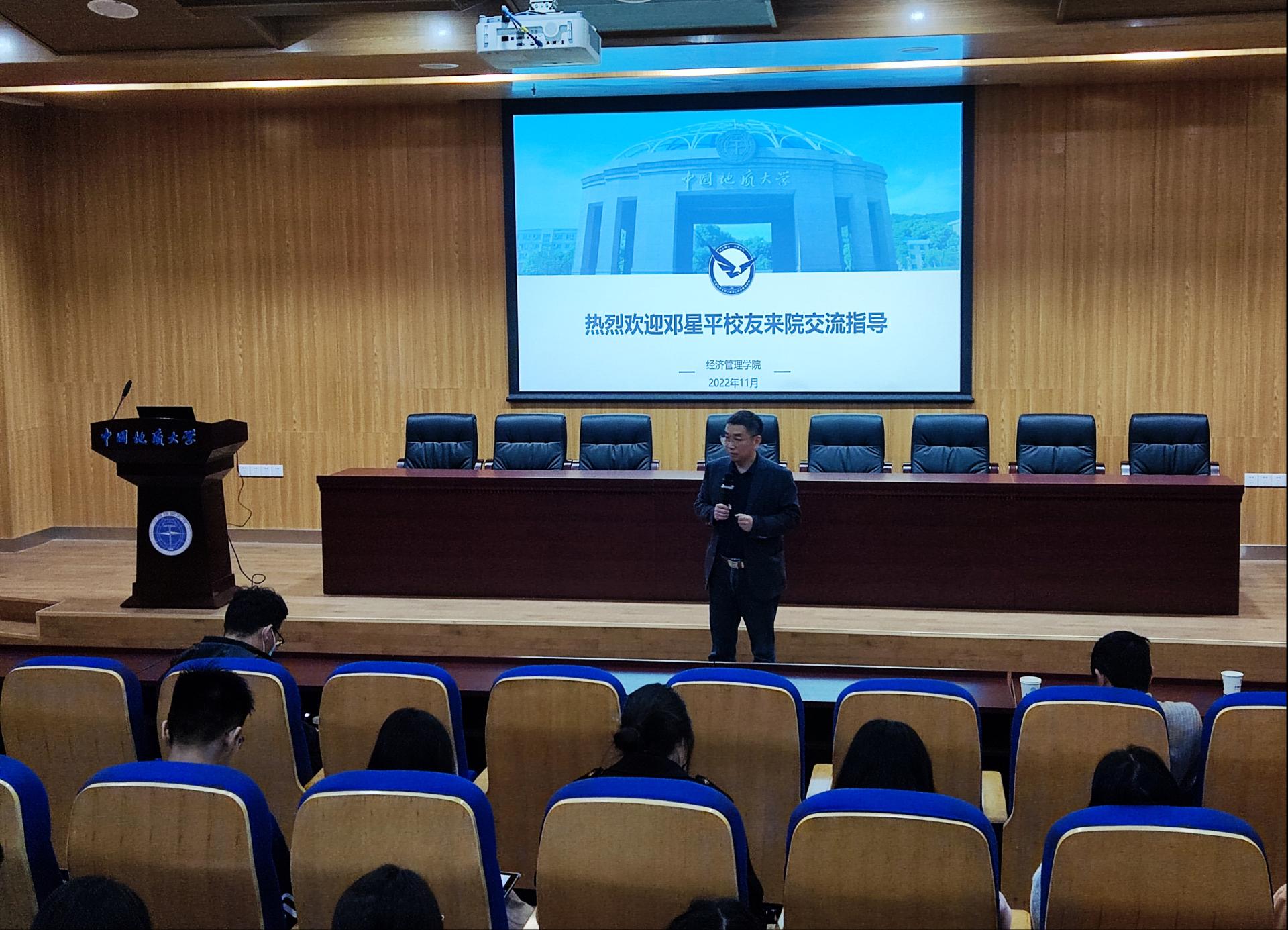 (通讯员:吴涛,张弛)2022年11月14日下午,学院邀请优秀校友邓星平在一楼报告厅开展“校友一席谈”交流讲座,学院党委书记杨昌锐、党委副书记李少杰、辅导员张弛、兼职辅导员吴涛参加。讲座由李少杰主持。