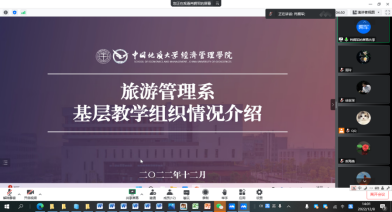 (通讯员:黄珂 李会琴)2022年12月8日下午2点,旅游管理系召开基层教学组织建设研讨会。会议采取线上方式,由肖拥军主任主持,旅游管理系全体教师参加,还特别邀请了我校博物馆馆长徐世球教授。