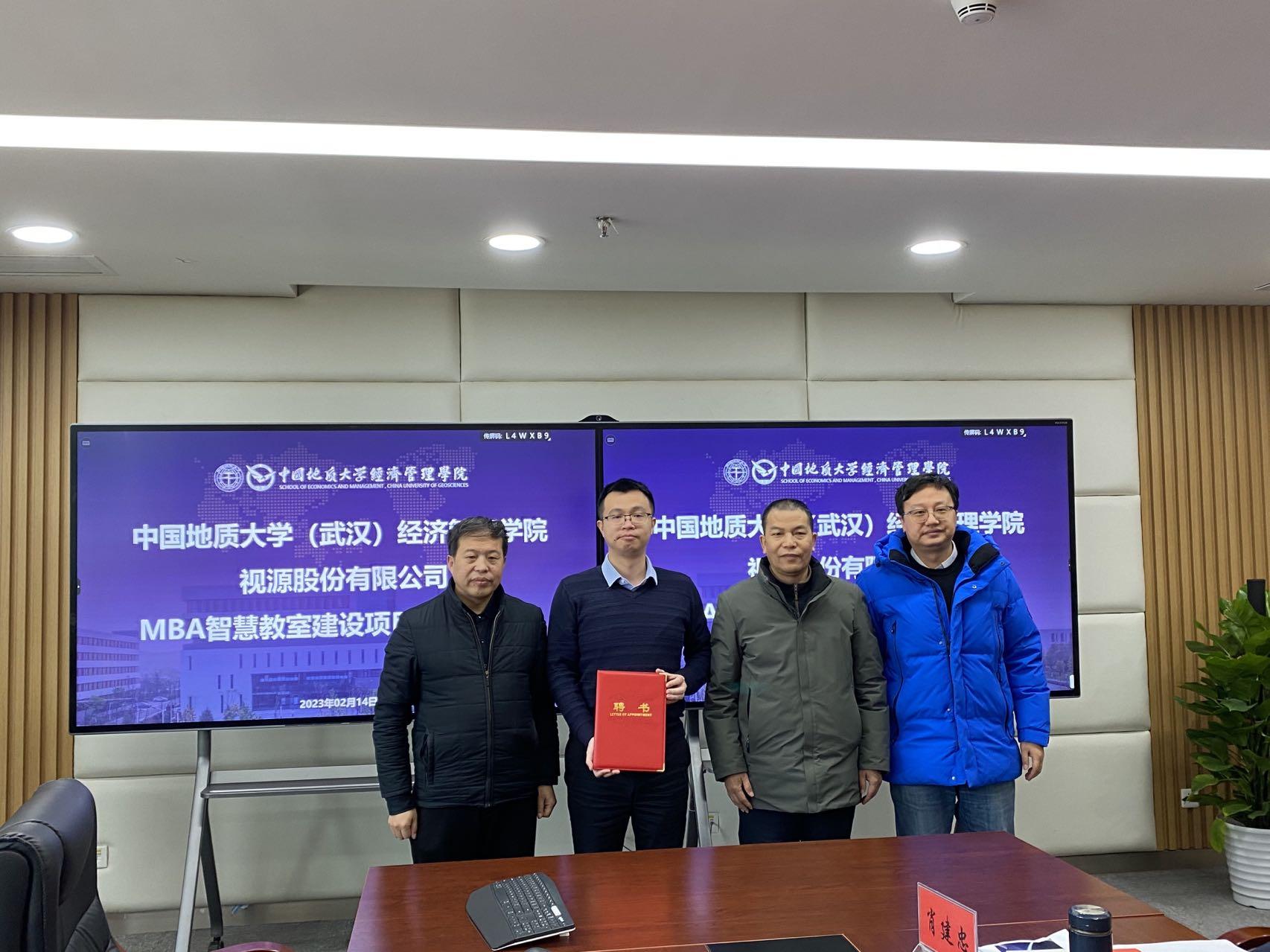 (通讯员 张弛)2023年2月14日上午,视源股份有限公司集团副总裁黄逸涛一行来院,就MBA智慧教室建设项目及学生实习就业相关工作开展交流座谈。座谈会在科教七楼422会议室举行,集团副总裁黄逸涛、集团方案架构师徐建明、战略投资并购业务总监安文冰、希沃华中大区总经理方自安、希沃湖北省数字孪生总监罗俊才、希沃湖北省高教事业部部长吴曦德等人出席会议,学院党委书记杨昌锐、院长杨树旺、党委副书记李少杰、副院长肖建忠、副院长於世为、副院长郭锐、副院长程胜、副院长王广民、工会主席王林珠、院务委员侯俊东、综合办主任陈永佳、实验中心主任赵谦、就业专项辅导员张弛一同与会。座谈会由副院长肖建忠主持。