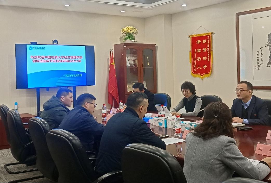(通讯员 江娅 张弛 徐天宜)为积极响应教育部2023届全国普通高校毕业生就业工作第二次视频调度会号召,3月3日上午,我院党委副书记李少杰、副院长肖建忠、会计系主任杨洁、辅导员张弛与本研学生代表一行赴申万宏源证券有限公司湖北分公司走访座谈。公司总经理赵杰俊、副总经理薛才春、财富管理部总经理周芳、运营管理部代理主任周鹏、新华路营业部副总经理陈凯、机构部负责人张裕安出席。