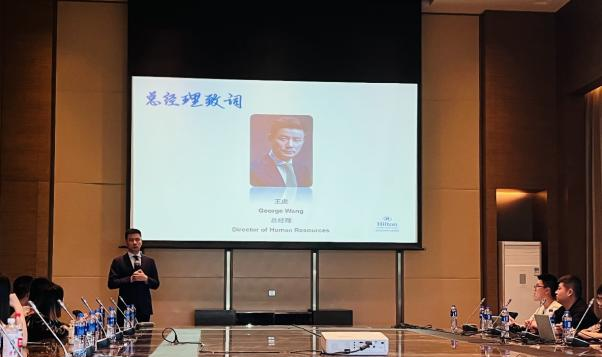 首先,人力资源部副经理陈小霞女士详细介绍了希尔顿酒店集团及酒店概况,结合希尔顿酒店集团多品牌发展现状,引导大家思考采取多品牌战略的原因,并向同学们讲述了希尔顿酒店的成长故事。