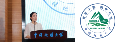 旅游管理系主任李会琴老师发布旅游管理系LOGO并宣布比赛开始。旅游管理系LOGO为圆章式设计,构图简洁,内蘊寓意丰富。LOGO以蓝色和绿色为主题色,正上方放置“寓学于游,胸怀九州”,为旅游管理系理念口号,正下方放置学校校名,中心放置山、水元素图案,寓意旅游与山水文化、“绿水青山就是金山银山”、地学旅游景观等,外圈为象征蓝色地球和呼应中国地质大学校徽的“地大蓝”,并置入了旅游管理系成立于1993年、位置在武汉等方面的信息。她指出,旅游管理系LOGO的设计和创意,是旅游管理建系30年来教学育人的实践结晶,其发布和正式启用必将在增强专业凝聚力,加强专业文化建设,促进旅游管理专业办学理念及育人特色传播方面发挥积极作用。