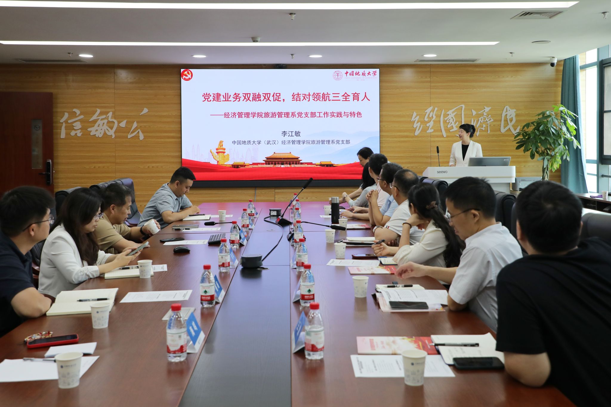 随后,我院旅游管理系党支部书记李江敏教授作《党建业务双融双促,结对领航三全育人——williamhill英国中文旅游管理系党支部工作实践与特色》专题分享,结合党支部书记“强国行”实践经历,详细阐述了党支部在党建与业务融合、结对育人等方面的工作经验和特色做法。
