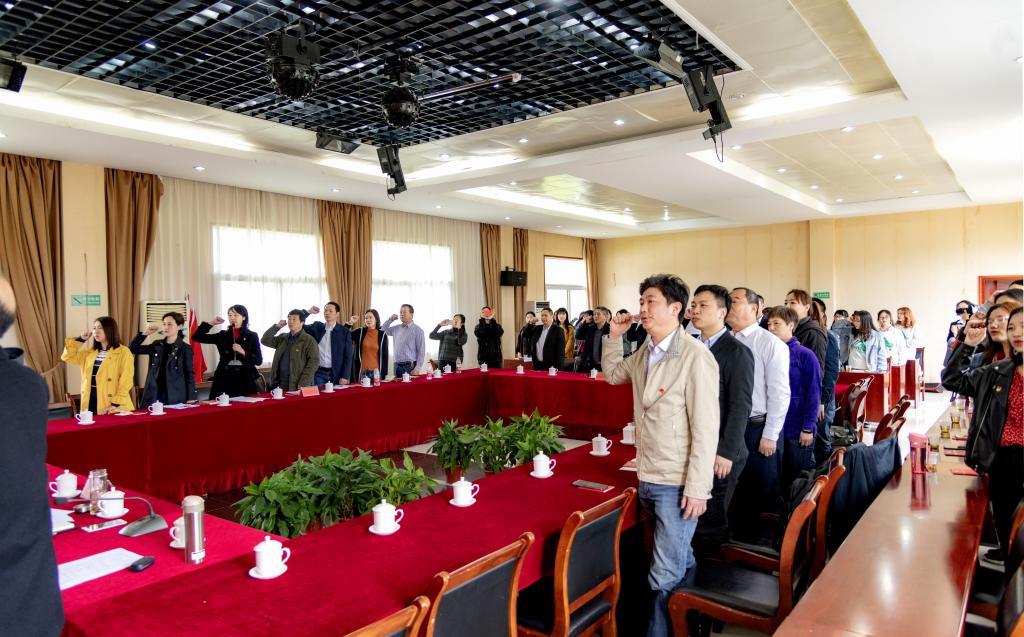 上午10时,支部主题党日在隐水洞地质公园会议室隆重举行。