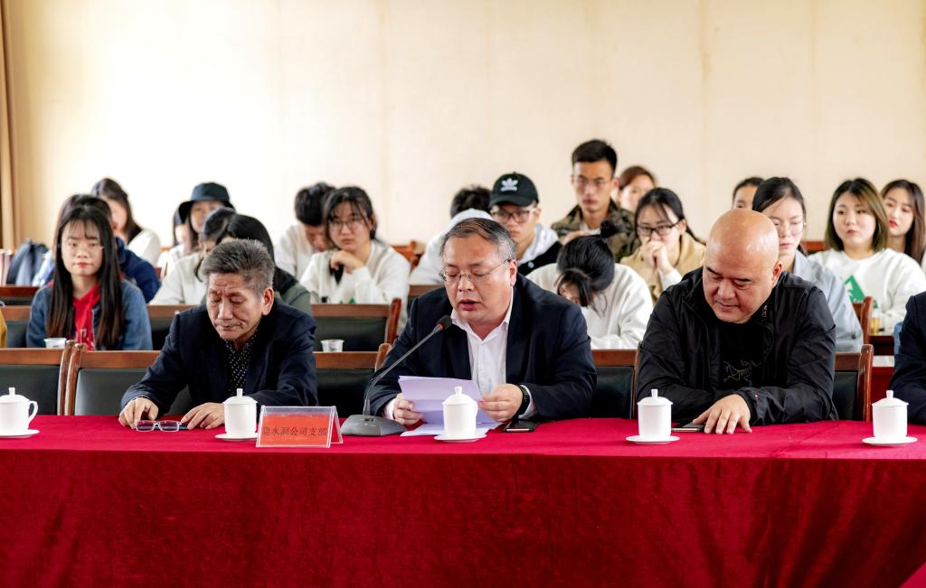 通山县扶贫办主任成军同志致欢迎辞,并介绍通山县旅游扶贫发展历程和实效。作为当事人之一,成军同志回顾了2003年4月18日—19日同鄢志武教授带领项目组及学生在隐水洞进行地质勘察时的遇险经历,以及期间谱写的“生死师生情”感人事迹。