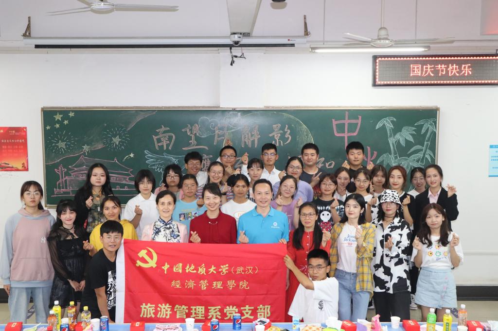 四位老师全程参与了班级的晚会活动。活动开始,旅游管理系党支部书记李江敏老师和旅游管理系系主任肖拥军老师先后为班庆活动致辞,表达了对同学们的节日问侯和大学新生活的祝福。让同学们感到了家一般的温暖,也让同学们对未来地大新生活充满期待。活动中,老师们欣赏同学们的才艺,点赞同学们的表演,为同学们的青春活力喝彩,与同学们共同参与游戏,和同学们一起品尝月饼,让同学们倍感亲近。活动临近尾声,肖拥军老师与同学们共同唱响《今天是你的生日》,为共和国71岁生日送上了属于地大师生的祝福。