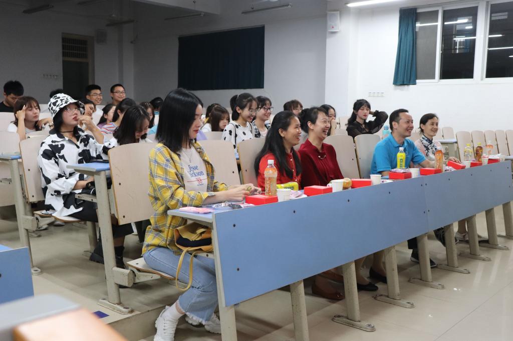 2020年9月30日晚,南望山校区北综101教室,williamhill英国中文新生08S207班“南望月解影,鹰扬识相知”主题中秋班庆活动临近开始,旅游管理系党支部书记李江敏老师、支部党员和旅游管理系系主任肖拥军老师、支委委员梁玥琳老师和周玲老师来到会场,与班级共同开展国庆和中秋双节庆祝活动。08S207班由来自旅游管理系的三名党员教师担任班主任和学务指导,是旅游管理系党支部“结对领航”的新生班级。此次活动为支部与该新生班级首次开展师生“结对领航”活动。