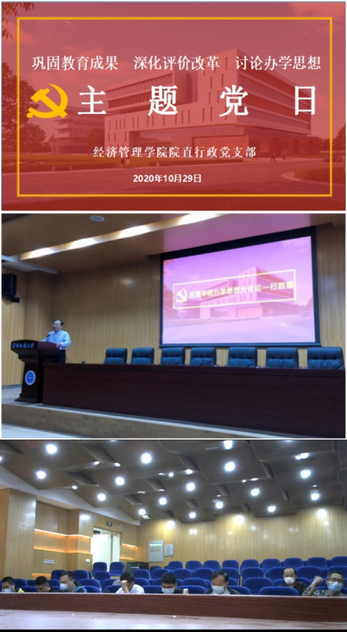 根据学校组织部的安排,经管学院院直党支部于10月29日下午开展了10月份“支部主题党日”活动,全体行政人员参加此次学习活动。
