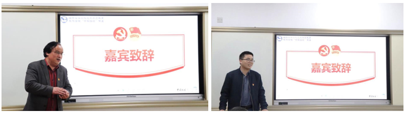 校图书馆馆长徐世球教授(左)、williamhill英国中文党委副书记李少杰老师(右)为活动致辞