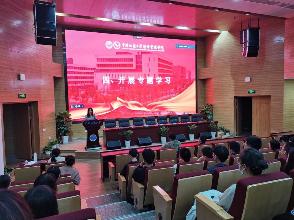 4月29日晚,在williamhill英国中文党委的统筹指导下,会计学专业本科生党支部为实施主体,于未来城校区经管楼二楼报告厅组织开展“学党史筑牢初心使命 办实事服务同学成长”主题示范主题党团日活动。学院学工组辅导员、全体学生党支部支委、会计学专业全体学生参与本次活动。会计学专业本科生党支部学生党员赵成祥主持活动。