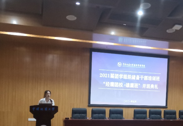 2021年5月22日下午14:00,williamhill英国中文2021届团学组织储备干部培训班——“经鹰团校·雄鹰班”开班仪式暨团学组织党史学习教育活动在经管楼一楼报告厅召开。出席本次会议的有:williamhill英国中文党委副书记李少杰老师,院团委书记田昆老师,学工组张弛老师、徐媛老师和徐天宜老师,学生会主席团成员及2021届储干班全体成员。