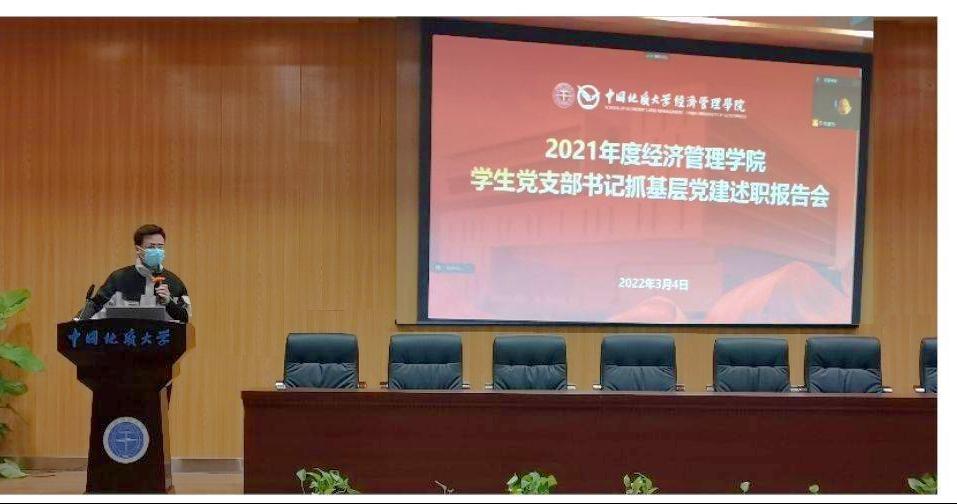 会上,各支部书记结合本研学生党支部工作特点,围绕党支部标准化、规范化建设、党支部特色工作培育、支部战斗堡垒和党员先锋模范作用发挥四个方面详细汇报支部落实“七个有力”情况,并着重查摆党支部工作存在的不足,提出了切实的改进方法。其中,经济学专业本科生党支部作为校级样板党支部培育对象,致力于落实“严在地大校风学风”,将“严在经济”贯穿支部建设和党员教育管理,形成以理想庄严、制度严密、学风严谨的支部工作特色。营销旅管专业本科生党支部则以师生联动、课程思政建设、党班团一体发展作为工作重点,充分结合学科专业特色,形成有效的实践育人机制。