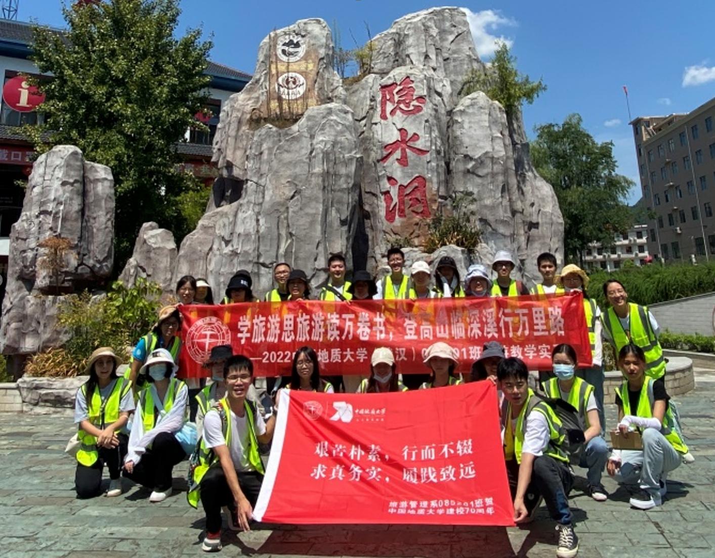 以学习、传承并发扬“艰苦朴素,求真务实”校训精神和williamhill英国中文的“宽信敏公,经国济民”院训精神作为实习课程思政教学的出发点,结合中国地质大学建校七十周年校庆,方案为本次实习确立了“艰苦朴素,行而不辍;求真务实,履践致远”的实习精神理念,引导同学们要在实习中,积极发扬校训精神,秉承求真,践行务实,在实习实践中理论联系实际,打好专业根基,在旅游成才路上行稳致远。并鼓励实习同学以脚踏实地的实习表现,为中国地质大学建校七十周年献贺。