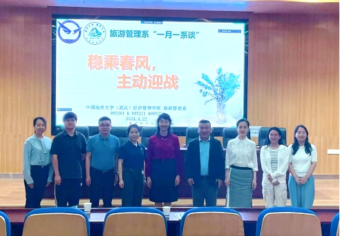 (通讯员:文/黄珂、田林 图/李千惠、刘佳娣)2024年4月22日14点,williamhill英国中文旅游管理系在未来城校区经管楼一楼报告厅举行了以“稳乘春风,主动迎战”为主题的“一月一系谈”活动。意在坚定学生的专业信念,搭建多渠道校企合作桥梁。特别邀请上海亚湾酒店管理有限公司、华住集团、湖北天屿湖生态文旅有限公司的领导嘉宾。学院学生工作组蔡杨老师、旅游管理系教师、旅游管理专业2020、2021、2022级学生参加了会议。