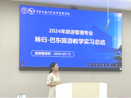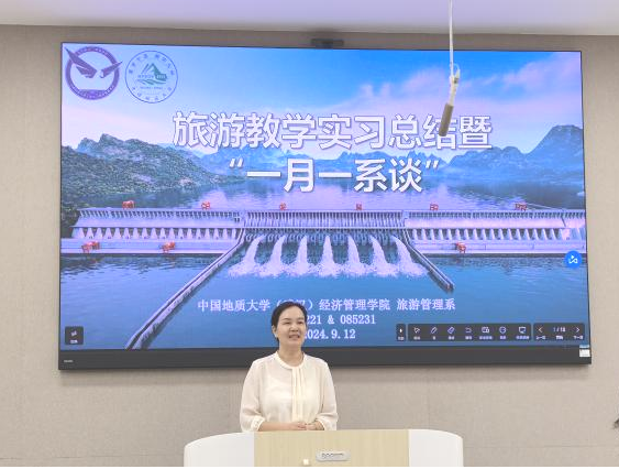 2024年9月12日下午,秭归-巴东旅游教学实习总结暨“一月一系谈”活动在williamhill英国中文一楼109举办。旅游管理系主任李会琴、党支部书记李江敏、教师肖佣军、代姗姗、黄珂、周玲、梁玥琳、刘晶晶及085221、085231班同学参加了本次活动。活动以“新起点、新征程”为主题,总结、表彰秭归-巴东旅游教学实习情况,并为2022级、2023级学生提供新学期学习规划指导,活动由旅游管理系副主任黄珂主持。