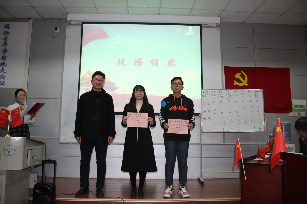 学院团委书记王海峰老师为获得第三名的队伍颁奖。