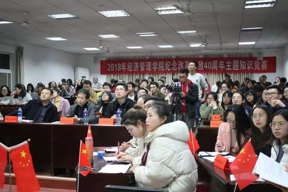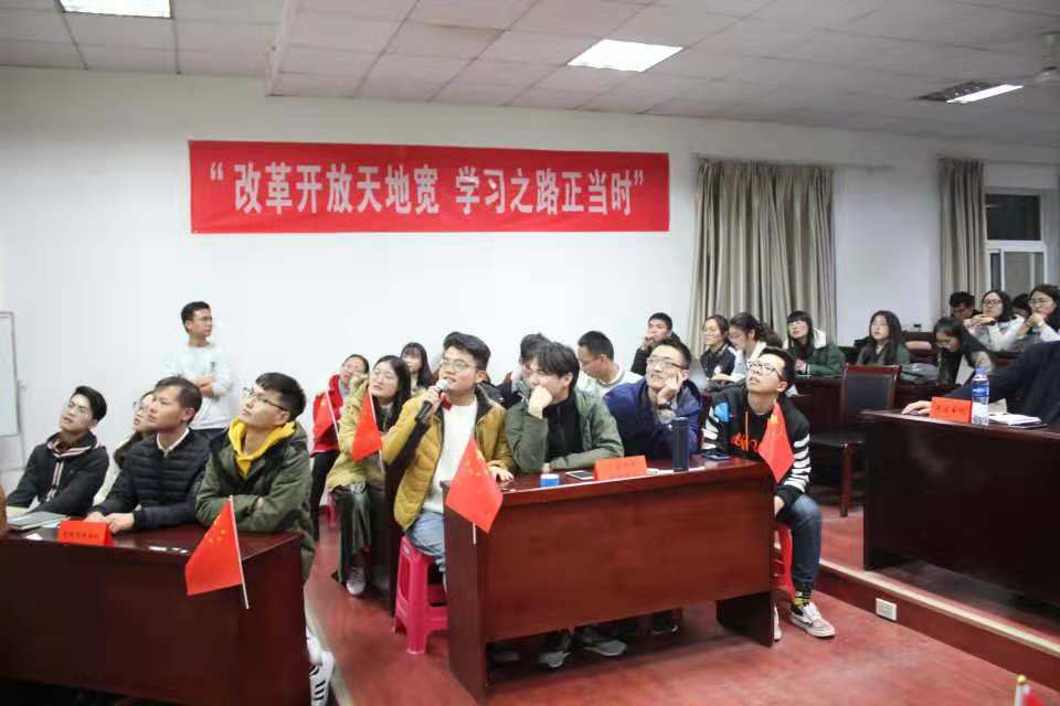 (学院党建办公室:王洁彬)2018年11月22日晚7:00,由williamhill英国中文党委主办、学院党建办公室承办的“改革开放天地宽,学习之路正当时”——纪念改革开放40周年主题知识竞赛活动在MBA楼208室如期举行。出席本次活动的嘉宾有:学院党委书记杨昌锐老师、学校党委组织部马洪福老师、学院党委副书记沈波老师、学院管理科学与工程系教职工党支部书记孙涵老师、学工组全体老师;全体学生党员到场观看学习。