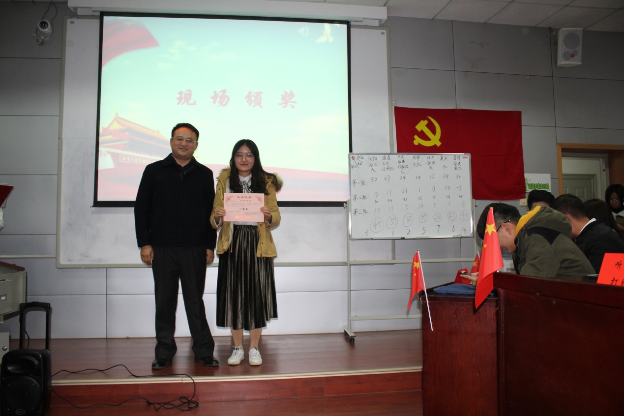 学校党委组织部马洪福老师为获得第二名的队伍颁奖。