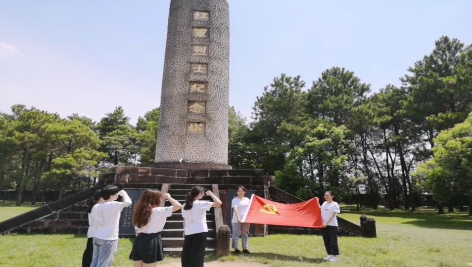 图3:实践团在叶坪红军广场烈士纪念塔前重温入党誓词