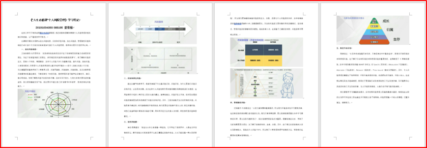 此次的两门自学课程各有侧重,一为帮助我们了解人生风险的《个人风险管理》,一为分享PPT技能的《教你做出上司喜欢的PPT》。两门课程内容丰富,讲解细致,学生们认真完成课程学习,并认真做好自学笔记,收获颇多。