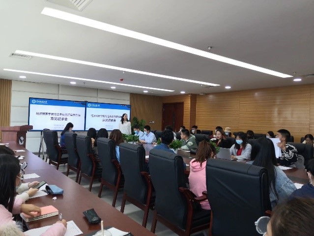 此次会议分为三个环节。首先,学生会工作人员给各位学生代表下发意见征集表,此次听证会后学生代表将以书面形式提出意见。然后,徐媛老师对《本科生综合素质测评实施办法(征求意见稿)》进行了介绍。方案分为组织机构、过程管理、测评内容和分数核减四个部分。徐媛老师详细解读了新方案的具体修订项目及综测分值体系等。最后,由到场学生代表对修订方案进行问题反馈,代表们就学生工作、学科竞赛、社团活动等多个方面进行了提问。
