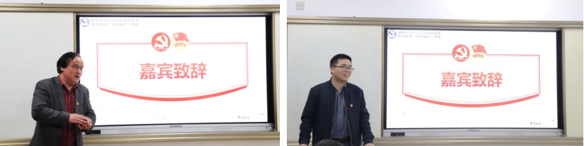 校图书馆馆长徐世球教授(左)、williamhill英国中文党委副书记李少杰老师(右)为活动致辞