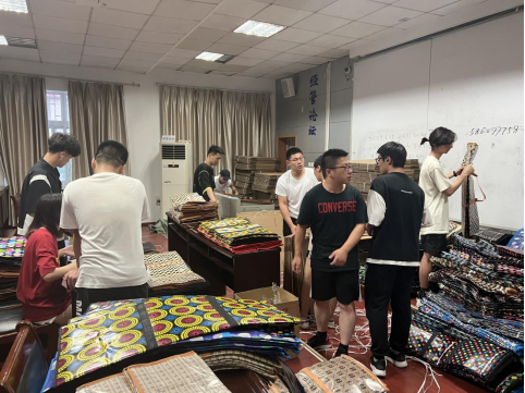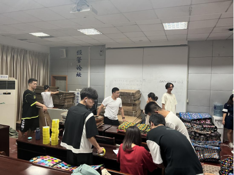 会后,同学们有序领取了学校与学院准备的搬迁物资。