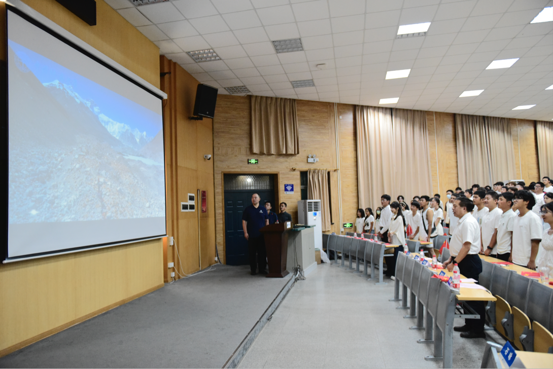 典礼第八项,院党委书记杨昌锐为全体新同学讲授院本课程“了解学院文化,领悟经管精神”。他从学院院训、院风、院徽和学院使命、愿景等五个文方面对学院文化内涵和精神内核进行深入了解,希望全体同学成为卓越、和谐、幸福的独立个体。