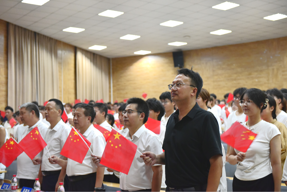 典礼第二项,院长於世为教授致辞。他向新生表示祝贺和欢迎,并介绍学院的历史沿革和学科发展。他鼓励新生将个人成长与国家命运紧密相连,并抓住机遇努力提升自我,并对此提出了两点期望:一是将幸福小我融入报国大我;二是将幸运机遇谱就奋进青春。